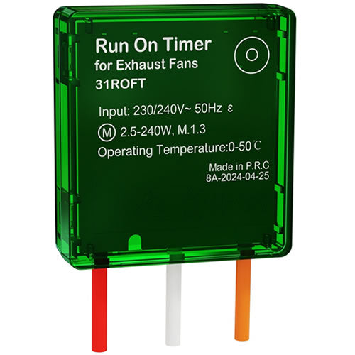 The Clipsal 31ROFT run-on timer is designed for applications where a 240V AC input load device is required to operate for a period of time after the circuit has been switched off. The most suitable application may be washrooms, toilets, or laundries without windows.